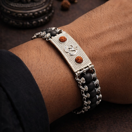 Om Rudraksha Karungali Bracelet - Silver Plated