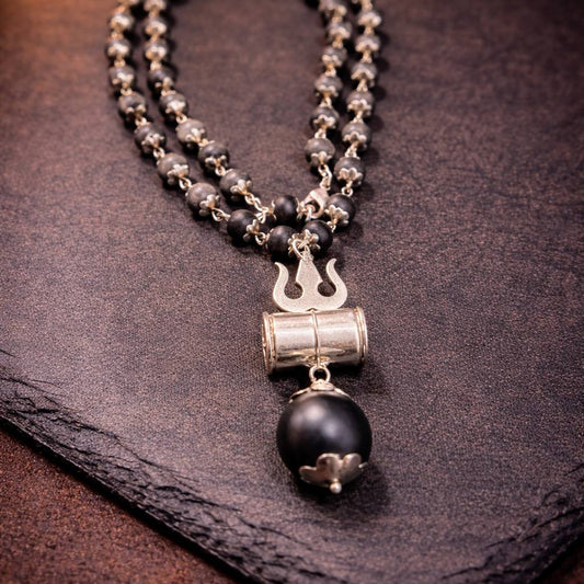 Silver Plated Om Trishul Rudraksha Karungali Necklace