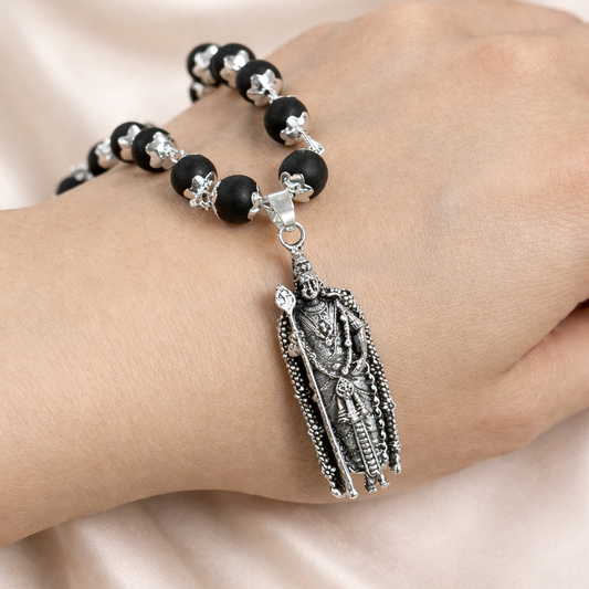 Divine Lord Murugan Karungali Malai Necklace - Silver Plated