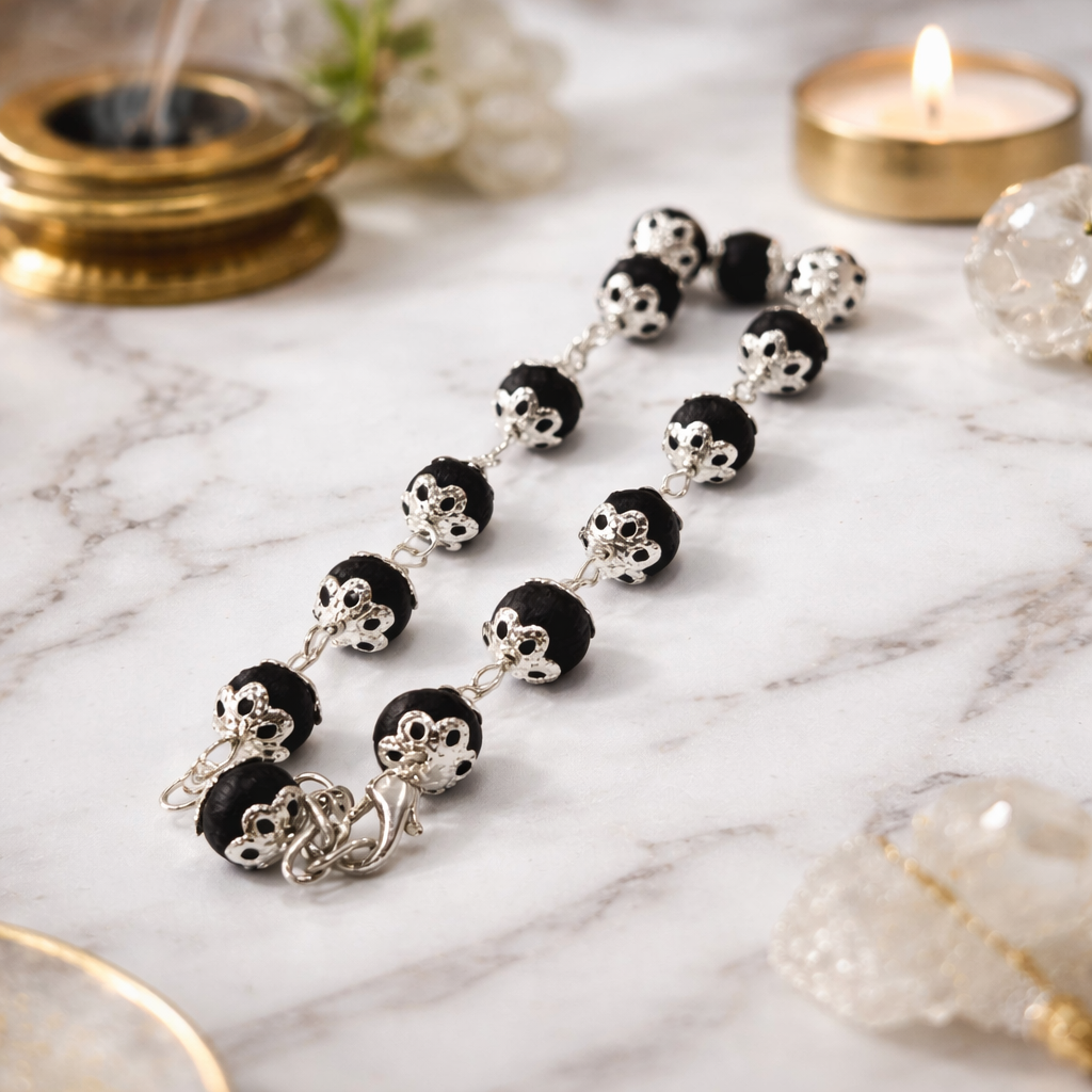 Flower Bracelet Karungali Malai Silver Plated Cap - Certified