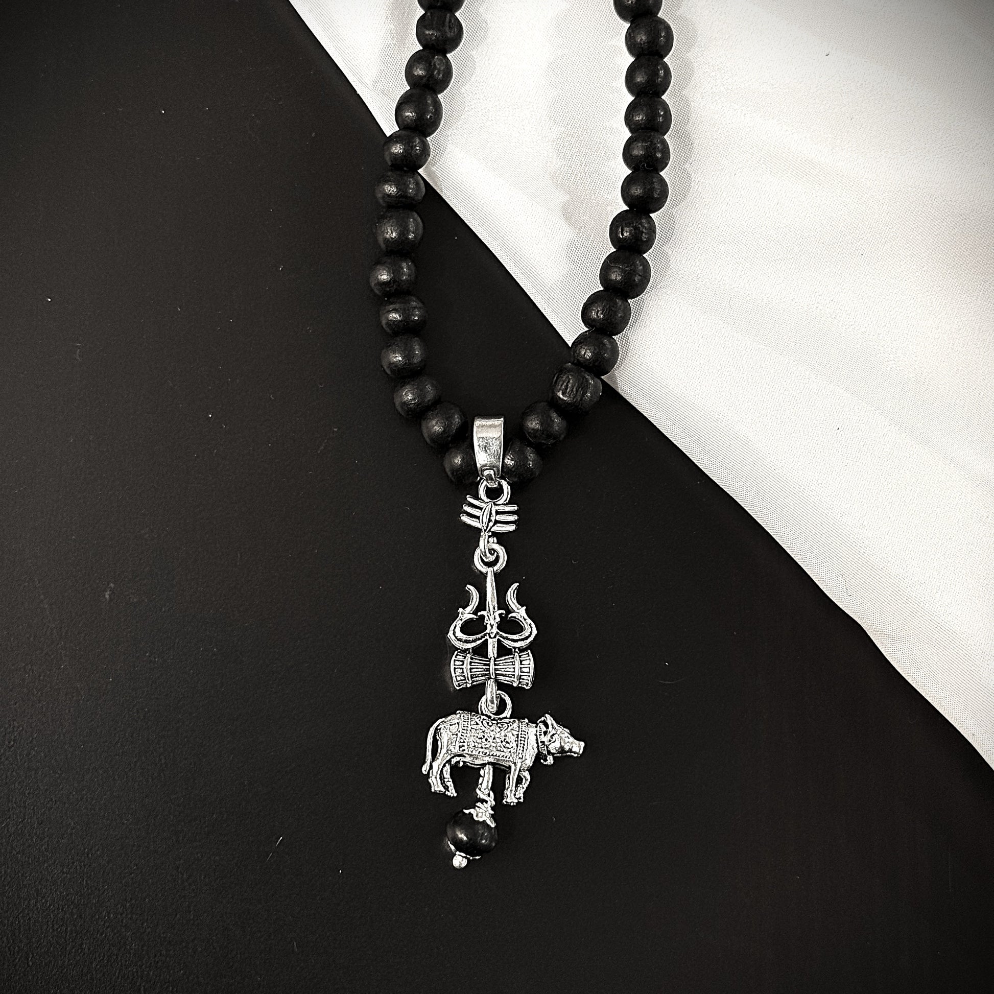 Original Karungali Malai with Shiv Trishul & Nandi Pendant